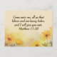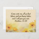 Cartão Postal Inspirador Mateus 11:28 Floral Amarelo