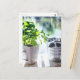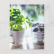 Foto da planta verde de Basil em um copo de cerâmica branco.