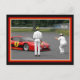 Um funcionário de curso ajuda um driver a se posicionar na grade falsa.