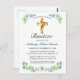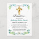 Celebre el bautismo de su hijo con amigos y familiares invitándolos con esta elegante postcard de invitación de bautismo floral de oro y verde azulado. Este diseño apresenta uma una hermosa cruz de oro con un marco floral sobre un fondo blanco simples. Personaliza a texto da texto da foente a tu gusto. Otras fuentes y estilos. Contáctanos con tus solicitudes especialmente y estaremos encantados de ayudarte.