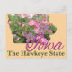 A menos que seja um ávido fã do filme BRIDGES OF MADISON COUNTY, você pode não pensar imediatamente em Iowa como um destino turístico. Você estaria errado. Os iowans têm muito de que se orgulhar. O berço de John Wayne, Donna Reed, Glenn Miller e o Presidente Herbert Hoover. Tudo em Iowa. Conhece a pintura, AMERICANA GOTHIC de Grant Wood? Sim. A casa está em Eldon, Iowa. E aqueles Madison County cobriram pontes. . A Ponte Holliwell é a mais longa e a Ponte Imes é a mais antiga. Ames é o lar do maior Gnomo Concreto do Mundo. Clear Lake, Iowa é onde "a música morreu". É tanto a localização do último show de Buddy Holly quanto a localização do campo onde o avião desceu que era o carregando Buddy Holly, Ritchie Valens e "O Grande Bopper". O "Campo dos Sonhos" criado para o filme do Kevin Costner está localizado em Dyersville, Iowa. Muito para ver. Iowa retira seu nome das pessoas de Ioway, uma das muitas tribos nativas americanas que ocuparam o estado na época da exploração europeia. O apelido do Estado, "O Estado Hawkeye", é uma homenagem ao chefe Black Hawk, líder da tribo nativa americana Sauk. O Iowa também é chamado de "Estado da Corna" - 90% da terra em Iowa é dedicada à agricultura, o que pode ser o motivo pelo qual é por vezes denominada "Land Where the Tall Corn Grows" e "Land of the Rolling Prairie". A flor estadual de Iowa é a Rosa Arkansana ou "Rosa selvagem". Fiquei encantado e surpreendido por encontrar um pouco crescendo no celeiro. Fiquei também verdadeiramente surpreendido com a intensidade da fragrância, duas ou três vezes mais intensa que a de um rosa cultivado. Sem o cheiro, eu nunca teria considerado este adorável florescente como um rosa. A camada de pétala do solteiro se assemelha mais a um cosmos, mas, novamente, o cheiro é incontestavelmente rosa. Este design homenageia nosso maravilhoso 29º estado. Um esboço do estado está cheio de adoráveis "rosas selvagens". Isto é combinado com um profundo rosa "Iowa" e ancorado com um verde "The Hawkeye State". Estes cartões postais deliciosos podem ser comprados antes das suas férias, para que você não perder tempo procurando por eles e possa se concentrar em toda a beleza ao seu redor. Par com os selos de correio correspondentes para uma apresentação ainda mais impressionante.