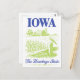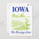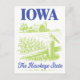 Celebre o charme rural de Iowa com este cartão-postal ilustrado mostrando uma cena pacífica de fazenda. Um pássaro percorre uma cerca, evocando a beleza silenciosa do Estado Hawkeye. Marcado com "The Hawkeye State" e "Est. 1846," este cartão postal captura a herança agrícola do Iowa e a simples elegância. Ideal para coletores, viajantes e fãs de Americana.