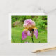 Feche uma íris roxa e roxa com barba mostrando a barba amarela