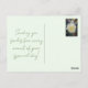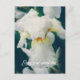 Cartão-postal branco elegante com fotografia da íris, coberto com gotas de chuva. Por favor, personalize-o, adicionando a sua própria mensagem e um "carimbo" (pequena imagem no verso). Para mais modificações (estilo de fonte, cor de fonte, posição de texto), clique em "Editar design".