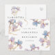 Este cartão postal elegante para salvar a data é perfeito para casamentos de primavera e verão. Este design apresenta um anel de íris em aquarela em tons de lilás e azul pervinca. Toques sutis de dourado adicionam um elemento cintilante e mágico.