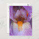 Bonita pétala de flor da íris roxa e lavanda e cartão postal personalizável. Fotografia de Susan. Clique em Personalizar para adicionar texto à parte frontal ou traseira. Se tiver perguntas ou pedidos, contacte-me. Visite o tesouro dos olhos sorridentes para ver mais flores, animais, natureza, e cartões e presentes de arte digitais para casa e escritório. Links para todas as minhas lojas estão localizados na minha página Perfil.