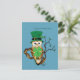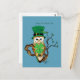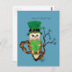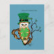 Coruja bonita vestindo um chapéu verde de duende com dois telhados.