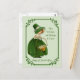 Vintage design apresenta uma jovem irlandesa com uma cesta de Shamrocks de sorte. Este pequeno Colleen está vestido de verde com capota e borda de rolagem. Design foi retocado à mão. O texto frontal diz... Que a sorte irlandesa e as bençãos sejam suas! Feliz Rua, Dia de Patrick.
