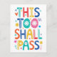 Encoraje alguém a perseverar com este design de tipografia decorativa e colorida com a mensagem 'Isso Também Passará'. A tipografia é acentuada com ícones florais, estrelas e borboletas brilhantes e alegres. O interior pode ser personalizado para atender às suas necessidades.