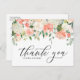 Pêssego, obrigado de tema floral. Apresenta a terra floral de aquarelas e rosas de marfim, peões e híbridos. Personalize adicionando nomes, endereço e mensagem. Este obrigado floral que você faz é perfeito para casamentos, chás, festas e muito mais.