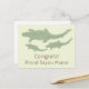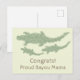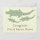 Imagens divertidas e recortadas de silhuetas verdes de camuflagem de um jacaré visto de cima enquanto rasteja e nada pelo pântano imaginário. O fundo desta imagem é transparente. Você muda o fundo, adiciona ou reduz o número de imagens, muda a posição e o tamanho das imagens e muda o texto. Cartão de parabéns engraçado para uma orgulhosa mãe do bayou.