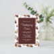 Convite de jantar de Ação de Graças elegante com cartão postal com fundo burgundy vermelho e folhagem de outono colorida. Com letras tipográficas brancas, você pode adicionar suas próprias informações. O verso do convite tem um menu personalizável para compartilhar suas opções culinárias com seus convidados. Um convite de outono adorável para agradecer com os entes queridos.