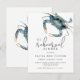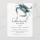 O convite perfeito para um jantar de ensaio de casamento à beira-mar, este design apresenta uma caranguejo azul no canto superior em vibrantes cores de aquarela impressas em um cartão-postal. O texto do convite tem um estilo moderno com uma elegância casual que é ao mesmo tempo sofisticada e acolhedora. Personalize o modelo de texto com seus detalhes específicos. Este convite é uma escolha maravilhosa para jantares de ensaio em áreas costeiras, ou jantares onde frutos do mar estão sendo servidos.
