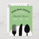 Estes convites são perfeitos para qualquer noiva e noiva planejando um janto romântico moderno de ensaio de casamento. O design apresenta talheres pretas em uma placa branca com fundo verde-menta e o verde-menta pode ser facilmente personalizado para qualquer outra cor de sua escolha. O design simples pode ser personalizado para se adequar ao seu evento especial e será o anúncio perfeito para qualquer partido moderno, incluindo chás de panela, noivados, casamentos, aniversários e muito, muito mais.
