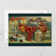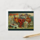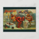 Um belo cartão postal de vintage com personagens de diabo e abóbora preparando o janto de Halloween.
