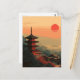 This artwork showcases a tranquil Japanese pagoda set within a peaceful forest, illustrated in a vintage-inspired style. The scene blends traditional architecture with natural beauty, creating a calm and nostalgic atmosphere. Ideal for Japan lovers, vintage art fans, and anyone drawn to serene Asian landscapes.
