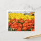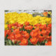 Tulipas vermelhas, amarelas e brancas na floração do cheio.