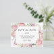Envie cartões "Save the Date" de forma econômica em cartões-postais para que seus convidados possam planejar sua festa ou evento. Mostrado aqui para uma celebração de 75 anos, você pode personalizar este texto como quiser. Lindas rosas cor-de-rosa e flores de jardim misturadas tornam este design feminino e fresco. As rosas cor-de-rosa, flores mistas e folhagens circundam seu texto com um estilo distinto. Todo o texto pode ser personalizado para sua festa, incluindo a idade do convidado de honra.