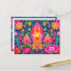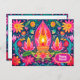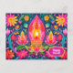 O cartão "Enchanting Diwali Gardens" é uma arte deslumbrante, misturando influências vibrantes da Guatemala com os elementos tradicionais de Diwali. Aqui está uma descrição detalhada: O cartão é um banquete visual, reminiscente de murais guatemaltecos vibrantes, que são conhecidos por suas cores vivas e detalhamento intrincado. O fundo é uma mistura espantosa de rosa escuro e índigo claro, criando um contraste cativante que imediatamente desenhar o olho. No primeiro plano, flores coloridas em várias formas e tamanhos em cascata graciosamente através da canvas. Estes florais lembram as mortes florais guatemaltecas, cada pétala e folha cuidadosamente pintadas com detalhes meticulosos. As flores são uma explosão de matizes, que vão de vermelhos profundos a amarelos brilhantes e cada sombra no meio. Eles representam a energia vibrante e a vida que Diwali traz. Entre as flores estão as delicadas lâmpadas de diya, cada uma meticulosamente enfeitada com padrões ornamentados. Essas lâmpadas emitem um brilho quente e ouro, simbolizando a luz que depele a escuridão, tema central de Diwali. Sua colocação em meio às flores cria um equilíbrio harmonioso entre a beleza da natureza e a luz orientadora da tradição. No centro de tudo, a mensagem "Happy Diwali" é escrita elegantemente, suas letras enfeitadas com padrões intrincados inspirados pela arte guatemalteca. A mensagem é um farol de alegria, suas palavras radiando positividade e calor. O efeito geral deste cartão é simplesmente deslumbrante. A fusão da arte guatemalteca com os elementos tradicionais de Diwali cria uma obra-prima que é visualmente atordoante e profundamente significativa. Captura a essência da celebração de luz, amor e unidade de Diwali. Ao ver esta carta, não podemos deixar de nos emocionar pela sua beleza. É um testemunho da universalidade da arte e da celebração, nos lembrando da beleza incrível que pode ser encontrada na mistura de culturas e tradições.