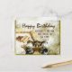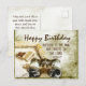 Cartão postal de aniversário personalizado Inspirador retrata uma cena vintage de uma moldura e binóculos e apresenta o versículo da Bíblia Jeremias 17:7, "Bem-aventurado o homem que confia no SENHOR". O cartão pode ser personalizado com os detalhes de sua escolha._