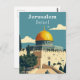 Descubra a beleza antiga de Jerusalém, Israel, com este cartão-postal retrô mostrando a notável mistura da história, religião e cultura da cidade. Conhecida pelos seus sítios sagrados e pela sua arquitetura eterno, Jerusalém é uma encruzilhada de crenças e civilizações. Este cartão postal ao estilo vintage apresenta marcos icônicos como a Igreja do Santo Sepulcher, o Muro Ocidental, e o Domo do Rochedo, convidando-o a experimentar o significado espiritual e histórico de uma das cidades mais antigas e mais reverenciadas do mundo