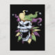 crânio de mau com grin grande de mau. Desenho original de caneta e tinta, com cores Mardi Gras digitais. T-shirts, suores, canecas, artigos de presente.