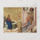 Pintura icônica com fundo de ouro. O público de homens assiste à porta enquanto veem Jesus falar com a mulher samaritana.