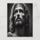 Esta ilustração em preto e branco retrata Jesus Cristo como o Pastor compassivo, irradiando serenidade divina. Seus olhos gentis e comportamento calmo exsudam amor incondicional e segurança. Detalhes intrincadamente renderizados destacam seu cabelo fluindo e expressão serena, criando uma representação cativante da paz. A suave interação de luz e sombra enfatiza temas de orientação e proteção. Esta obra de arte serve como um lembrete pungente do papel de Cristo como o Pastor eterno, convidando à contemplação sobre seu cuidado inabalável e o refúgio espiritual encontrado em seu abraço.