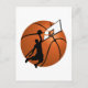 Cartão Postal Jogador de Basquete Slam Dunk com Hoop na Bola