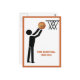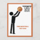 Jogador de basquete com cartão postal vertical de bola mostrando um ícone minimalista de uma silhueta preta de um jogador de basquete tentando colocar a bola laranja na cesta e seu texto sobre fundo branco com uma borda na mesma cor da bola. Este design é um modelo e é completamente personalizável. O presente perfeito para o jogador de basquete ou amante em sua vida. Alguns elementos são cortesia de vectorportal.com.