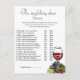 O jogo do calçado do casamento, Jogo do Chá de panela e o jogo do chá do casal divertido tem um tema de vinho. Todas as perguntas são editáveis; basta ir para "personalizar" e mudar toda ou uma pergunta específica.
