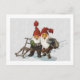 Um par colorido de gnomos com barbas compridas fica junto na neve. Arte do século XIX por Jacobsen.