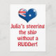 Comemorando a nomeação de Julia Gillard como Primeira-Ministra da Austrália, substituindo Kevin Rudd. Esta linha de designs apresenta a frase - Julia está comandando o navio sem um RUDDo! e uma imagem de um coração vermelho, branco e azul australiano. Mostre seu apoio à primeira Primeira-Ministra feminina da Austrália com esta ótima linha.