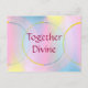 A afirmação espiritual Juntos Divinos é mostrada em um fundo de círculos e esferas de rosa, amarelo e azul. Mudando a forma como pensamos.
