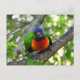 O Rainbow Lorikeet é inconfundível com seu bico vermelho brilhante e plumagem colorida. Ambos os sexos se parecem, com uma barriga e cabeça azuis (mauve), asas verdes, cauda e traseira, e um seio laranja/amarelo. São muitas vezes vistas em bandos altos e em movimento rápido, ou em galos comunais ao anoitecer.