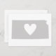 Com a forma do estado de Sunflower de Kansas com cinzas de fundo e um enorme coração cortado do meio, este cartão postal é excelente para qualquer um que realmente ama o estado do Kansas.