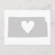 Apresentando o contorno da forma do mapa da silhueta do estado de Kansas preenchido com um fundo de cinza sólido e um grande coração cortado do meio, esses cartões postais cardíacos do Kansas são excelentes para compartilhar que o amor de Kansan é feito com uma rápida nota escrita.