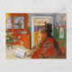 Karin Larsson sentado na mesa num xale lendo um livro. Vintage belas artes pelo artista sueco Carl Larsson.