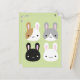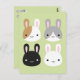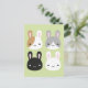 4 raças diferentes de coelhos bonitinhos num fundo verde para Primavera e Páscoa.