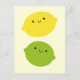 Fruta de citros. Limão Kawaii e limão num fundo amarelo pálido. Perfeito para o verão e a cozinha.
