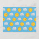Repeat pattern of happy suns and sad rain clouds on a blue sky background for changeable springtime weather.