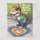 Cartão Postal Kawaii trex arco-íris ouve na calçada