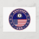 Crachá de Kentucky com bandeira de Kentucky e bandeira dos EUA cores, forma arredondada. Emblema de Kentucky. Seal de Kentucky. Coleção dos Estados Unidos.