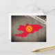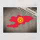 Postkarte mit einem Umriss von Kirgisistan, gefärbt em den Farben der Nationalflagge.