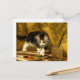 Cartão postal com a pintura a óleo de Henriëtte Ronner-Knip The Young Artist (1821-1909). Um gatinho preto e branco brinca com pintura e dois pincéis. Um presente adorável para amantes de gatos e entusiastas do Romantismo.