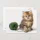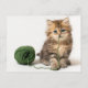 Cartão Postal Kitten com Yarn Verde
