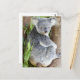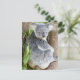 Este cartão-postal mostra uma foto de um coala fofo em uma árvore.