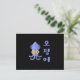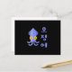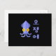 Purple squid with big yellow eyes and the Korean word for squid written in hangeul (o-jing-uh)