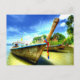 Melhor visão do Krabi, do lado do mar da Tailândia com barco de pesca ou galhudo em água livre com coqueiro e céu azul nas costas.