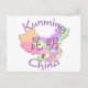 O Kunming da província de Yunnan, num mapa colorido da China, inclui os símbolos chineses para "Kunming" e a sua localização está marcada no mapa com um coração e uma bandeira. Um presente único e divertido! Projetada por Hendrika em RedThreadMaps.com